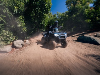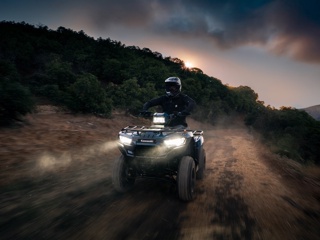 This isn't just a utility ATV; it’s a rugged partner for work and a blast for play. With its all-new aggressive styling and 3D emblems, it looks just like its big brothers. 🦍 Whether you’re hauling gear around the woodlot or exploring the NB backroads, the smooth CVT transmission and nimble handling make every ride a breeze. 💨 The addition of the handlebar-mounted LED light means you can see exactly where you're steering, even after the sun goes down! 🌙