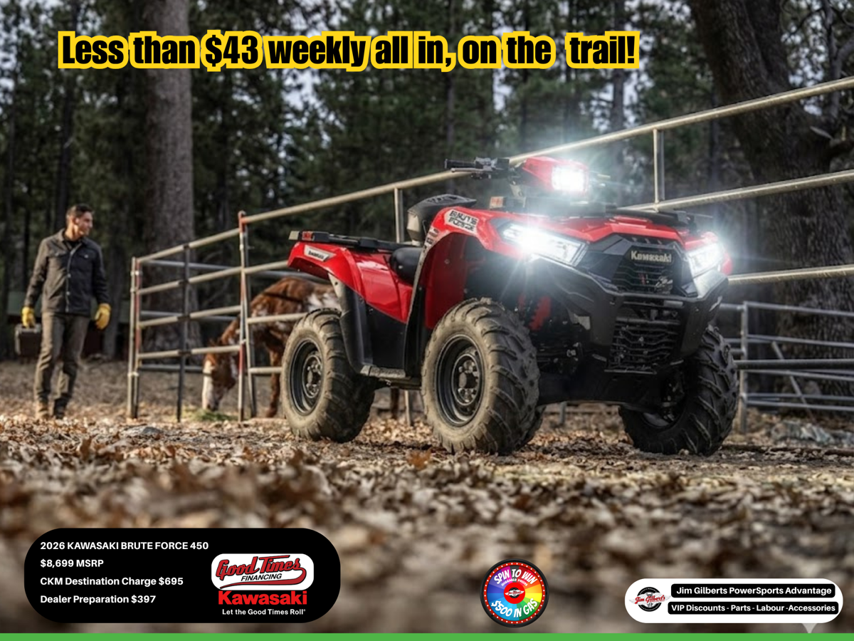 Get ready to dominate the New Brunswick backwoods! đ˛ Whether you're hauling gear out past Hanwell or exploring the scenic trails along the Saint John River, the 2026 Kawasaki Brute Force 450 is your ultimate partner in crime. This mid-size beast punches way above its weight class, offering the perfect blend of "get-it-done" utility and "letâs-go" sport performance. đ˘