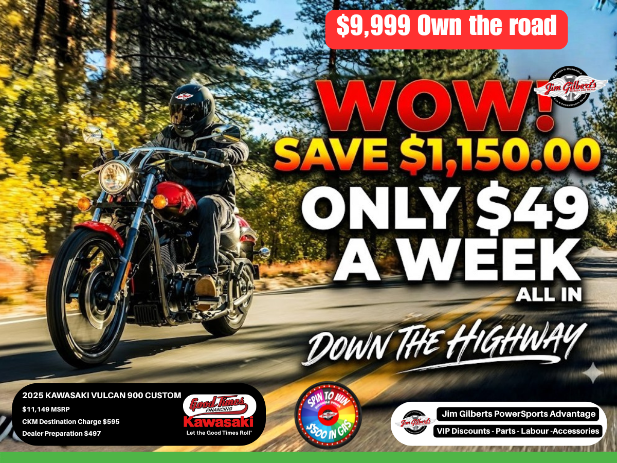 KAWASAKI VULCAN 900 CUSTOM - Own the road for just $49 a week, all in