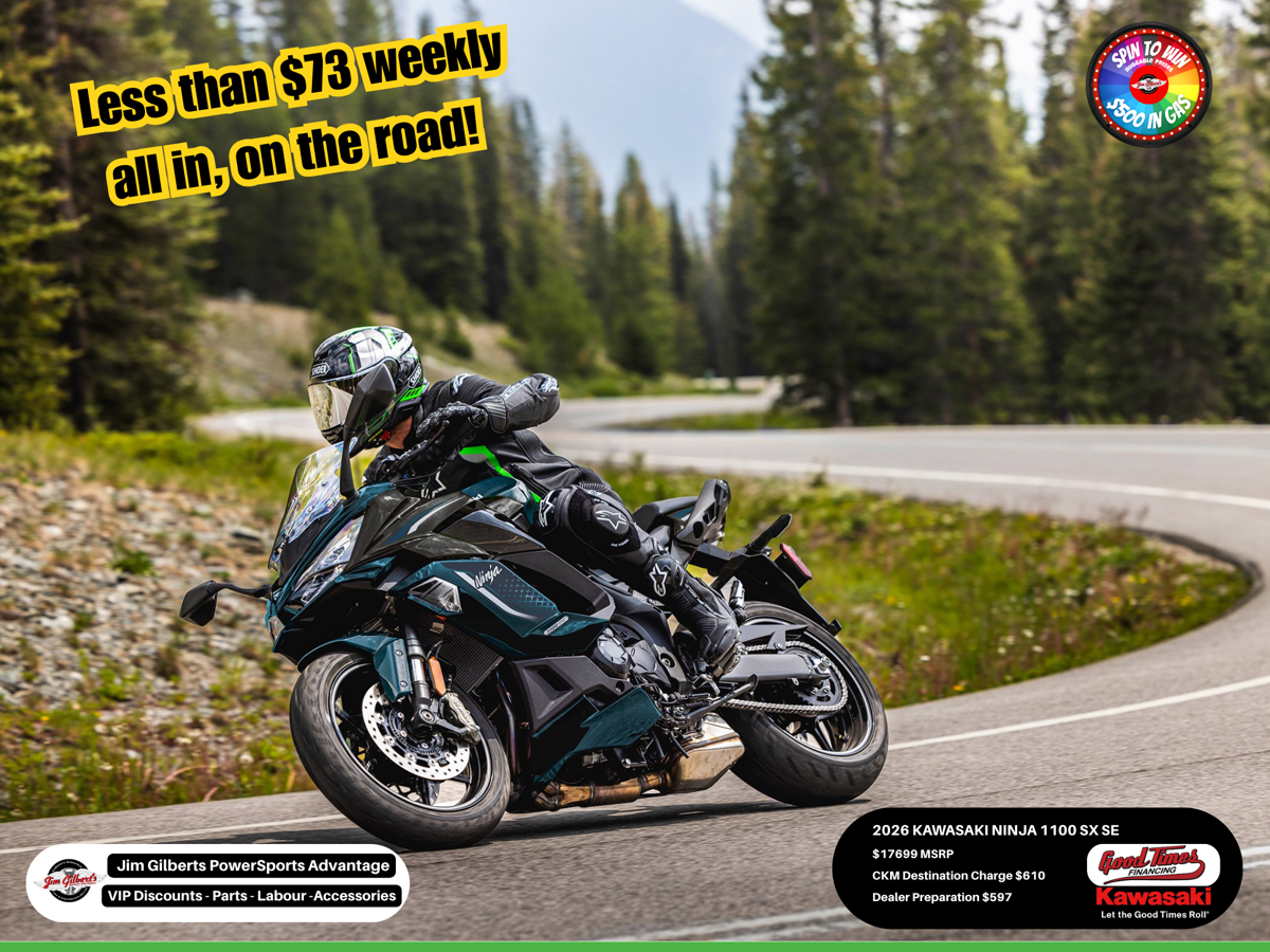 Experience the pinnacle of versatility with the 2026 Kawasaki Ninja 1100 SX SE, available at Jim Gilbert’s PowerSports in Fredericton! This isn't just a motorcycle; it’s a masterclass in balance. Whether you're carving the tight turns of the Fundy Trail or cruising the open stretches of the TCH, the Ninja 1100 SX SE delivers supersport thrills with luxury-class comfort. ?️