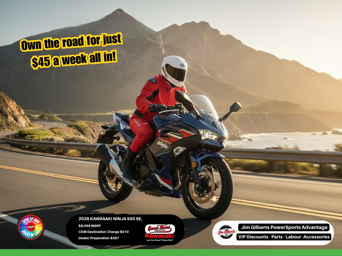 At Jim Gilbert’s PowerSports – Canada’s #1 Selling Kawasaki Dealer, we go the extra mile to make your ride memorable: