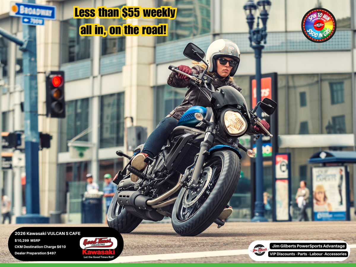 Get ready to turn heads in Fredericton! ?️ The 2026 Kawasaki Vulcan S Cafe isn't just a cruiser; it's a statement. ? Born from the heart of a Ninja 650, this bike delivers that punchy, sportbike-derived performance you crave, wrapped in a stunning vintage cafe-racer package. ☕ Whether you're cruising down the Hanwell or taking a scenic trip to the Bay of Fundy, the Vulcan S Cafe handles like a dream with its lightweight chassis and nimble suspension. ?
