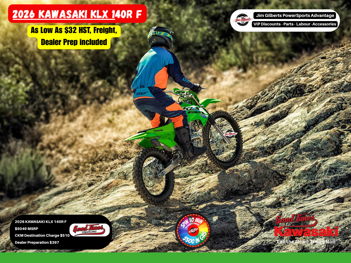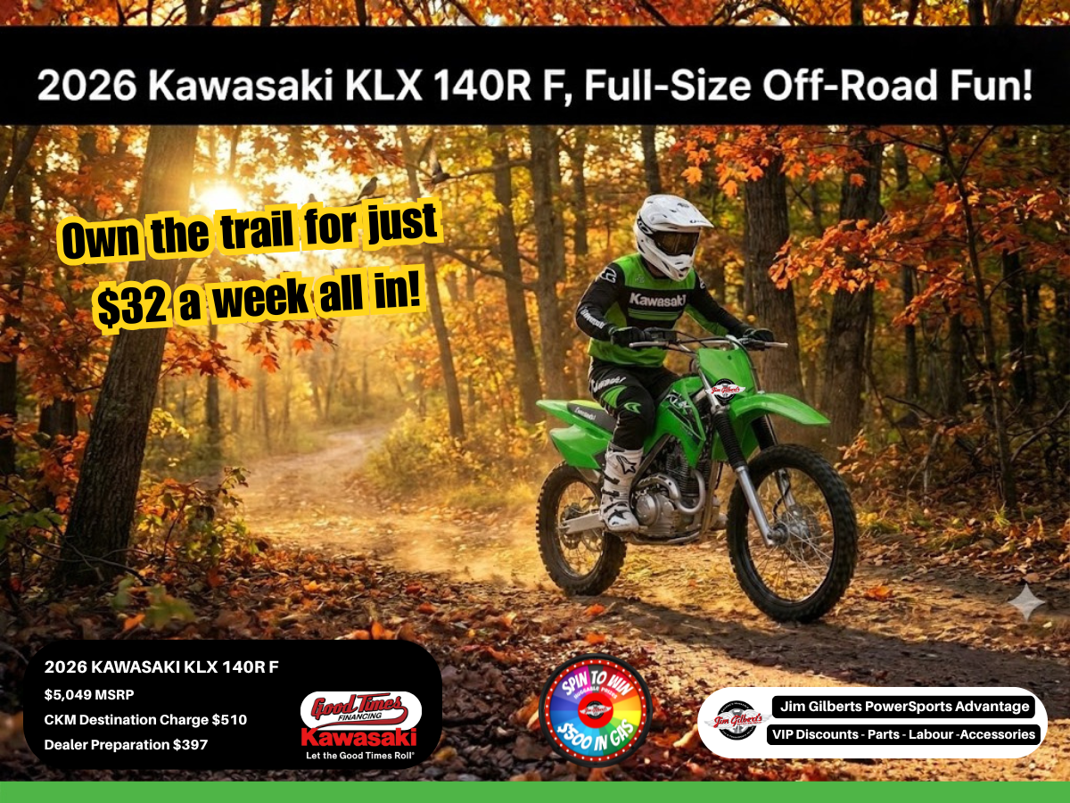 Ready to level up your off-road game in Fredericton? The 2026 Kawasaki KLX 140R F is the "big brother" of the KLX family, specifically built for riders who want that lightweight, flickable feel but need the ground clearance of a full-size bike. Whether you're navigating the tight woods of New Brunswick or hitting the open trails, this machine is designed to make every ride an absolute blast. 🚀
