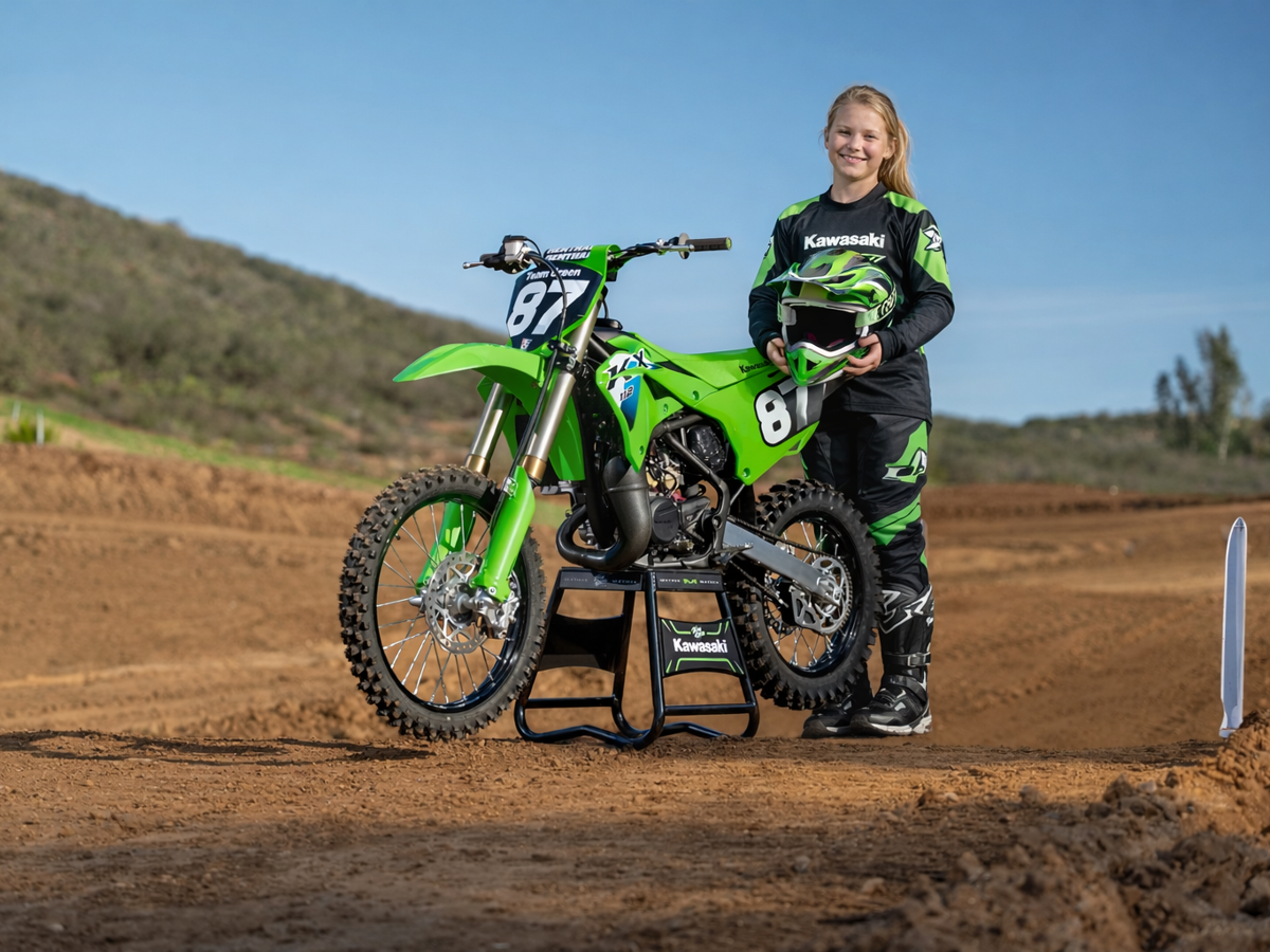 Featuring a high-performance 112cc 2-stroke engine with the legendary KIPS power-valve system, this bike delivers the kind of crisp, responsive power that leaves the competition in a cloud of dust. 💨 For 2026, Kawasaki has cranked up the intensity with a brand-new 43mm inverted KYB front fork and a Uni-Trak rear shock that now offers a massive 12 inches of travel—matching the full-size KX models! 😲