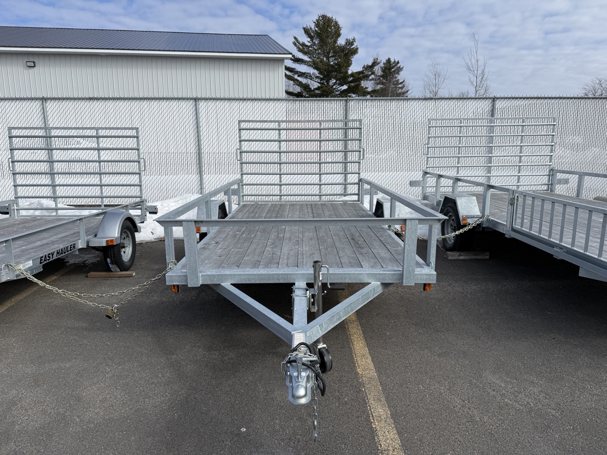 • • Easy Hauler is committed to delivering exceptional craftsmanship and reliability for outdoor enthusiasts who demand top performance. With over 25 years of expertise, they provide high-quality trailers designed for durability, strength, and peace of mind. Each model features performance-driven elements such as welded steel frames, rust-resistant galvanized finishes, and versatile decking options. Loading is effortless with full-width rear ramps, while 14-inch high sides and dual D.O.T.-approved safety chains enhance security during transport. Trailers also include D.O.T.-approved lighting, reliable towing couplers, and advanced braking systems on tandem models for superior control. Built to handle tough conditions, they feature heavy-duty galvanized fenders, smooth leaf-spring suspension, and Easy Lube Hubs for long-term performance. At Easy Hauler, every detail reflects their dedication to quality, ensuring your gear is transported safely so you can enjoy your adventures.