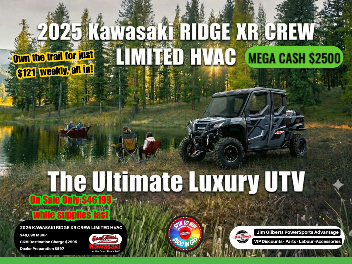 ? Experience the ultimate in off-road luxury at Jim Gilbert’s PowerSports – Canada’s #1 Selling Kawasaki Dealer!