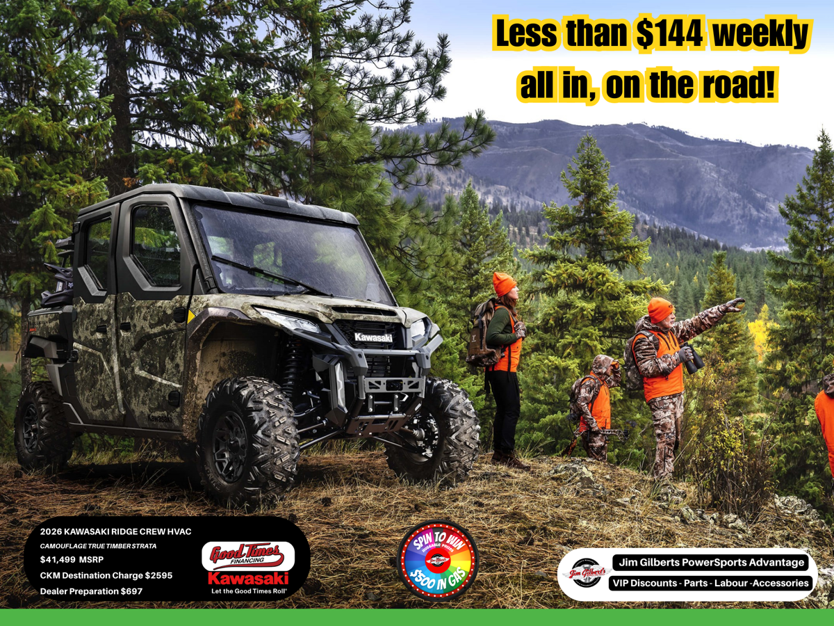 Are you ready to redefine what "off-road luxury" means in New Brunswick? 🌲 The 2026 Kawasaki RIDGE CREW HVAC in TrueTimber® Strata Camo isn't just a side-by-side; it’s a climate-controlled powerhouse built for the rugged beauty of the Maritimes. 🍁 Whether you’re navigating the snowy trails of the Miramichi or hauling gear across a Fredericton woodlot, this 6-passenger beast ensures your entire crew stays in total comfort. ❄️🔥