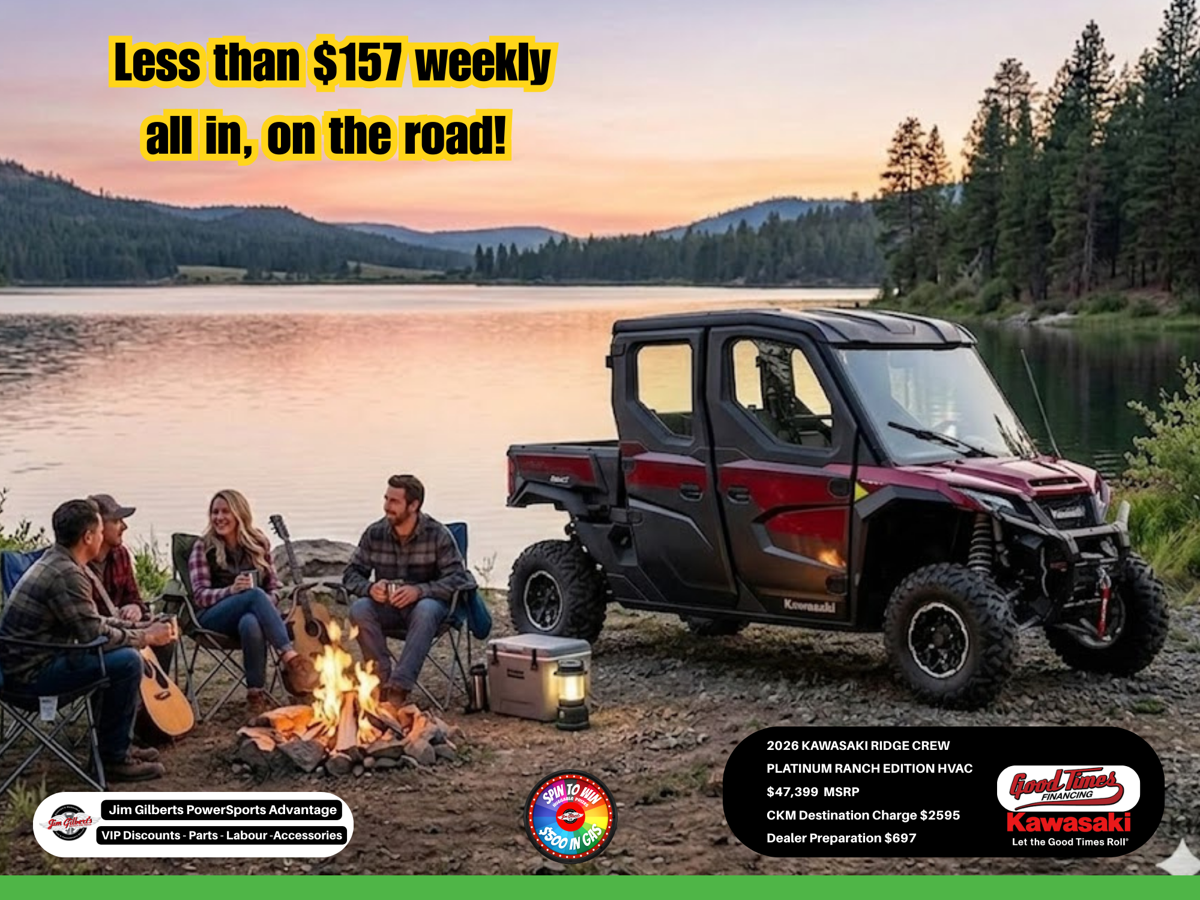 The 2026 Kawasaki RIDGE CREW Platinum Ranch Edition HVAC is engineered to redefine what a side-by-side can be. Powered by a groundbreaking 116 HP in-line 4-cylinder engine 🏎️, this machine offers automotive-level refinement that New Brunswick riders have been dreaming of. Whether you’re hauling gear across the farm or exploring the endless trails near the Saint John River, the full factory cab with HVAC ❄️🔥 keeps you perfectly comfortable regardless of the weather outside.