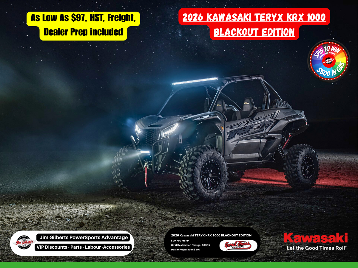 Are you ready to own the night? ? The 2026 Kawasaki Teryx KRX 1000 Blackout Edition isn't just a side-by-side; it’s a high-performance statement. Built for riders in Fredericton and beyond who don’t stop just because the sun goes down, this machine combines raw power with a stealthy, aggressive look that demands attention. ?