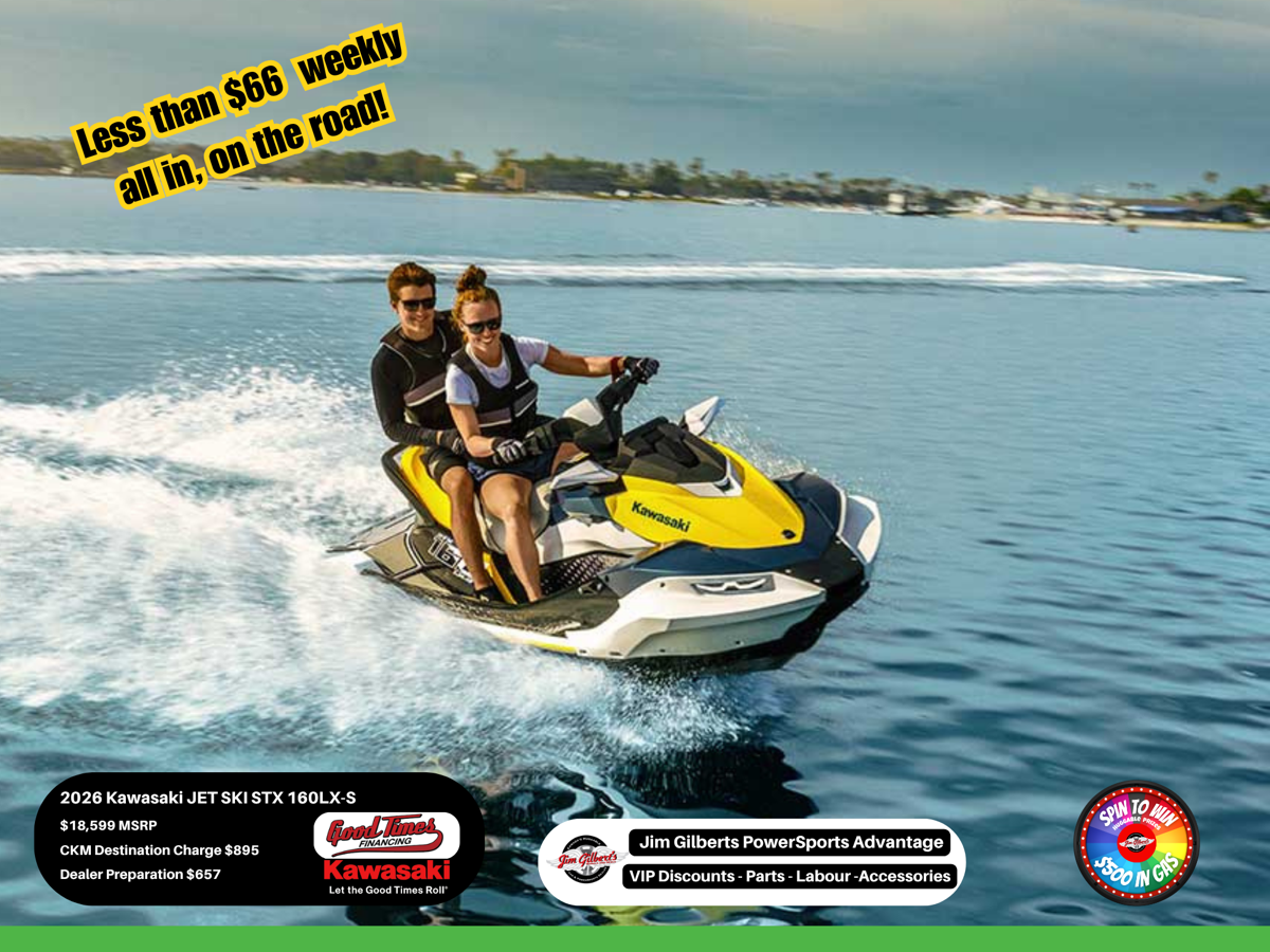 Are you ready to amplify your summer? ☀️ The 2026 Kawasaki JET SKI STX 160LX-S has arrived at Jim Gilbert’s PowerSports, and it’s bringing "LXury" to the Fredericton waterfront! Powered by a legendary Ninja-derived 1,498cc engine, this watercraft delivers 160 HP of pure adrenaline while staying incredibly fuel-efficient for those long hauls up to Grand Lake. ⛽💨