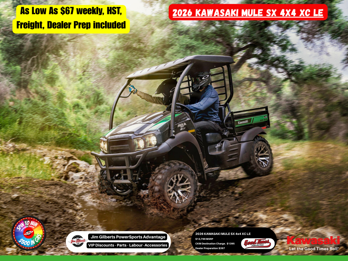 2026 KAWASAKI MULE SX XC LE - $67 weekly all in, on the trail $13,799*